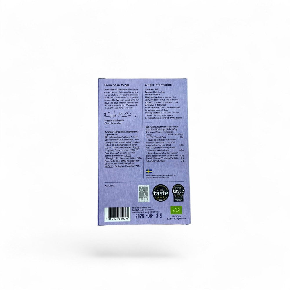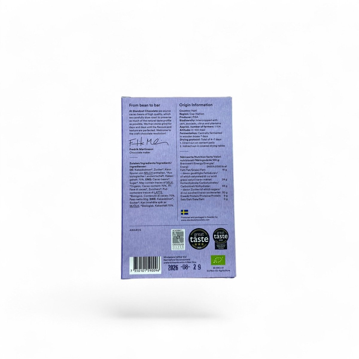 Standout likes to produce two types of chocolate: those that represent the expression of cocoa in its purest form (bars with two ingredients, cocoa and cane sugar) and those that celebrate creativity and in particular the Nordic spirit with unexpected or harmonious combinations.